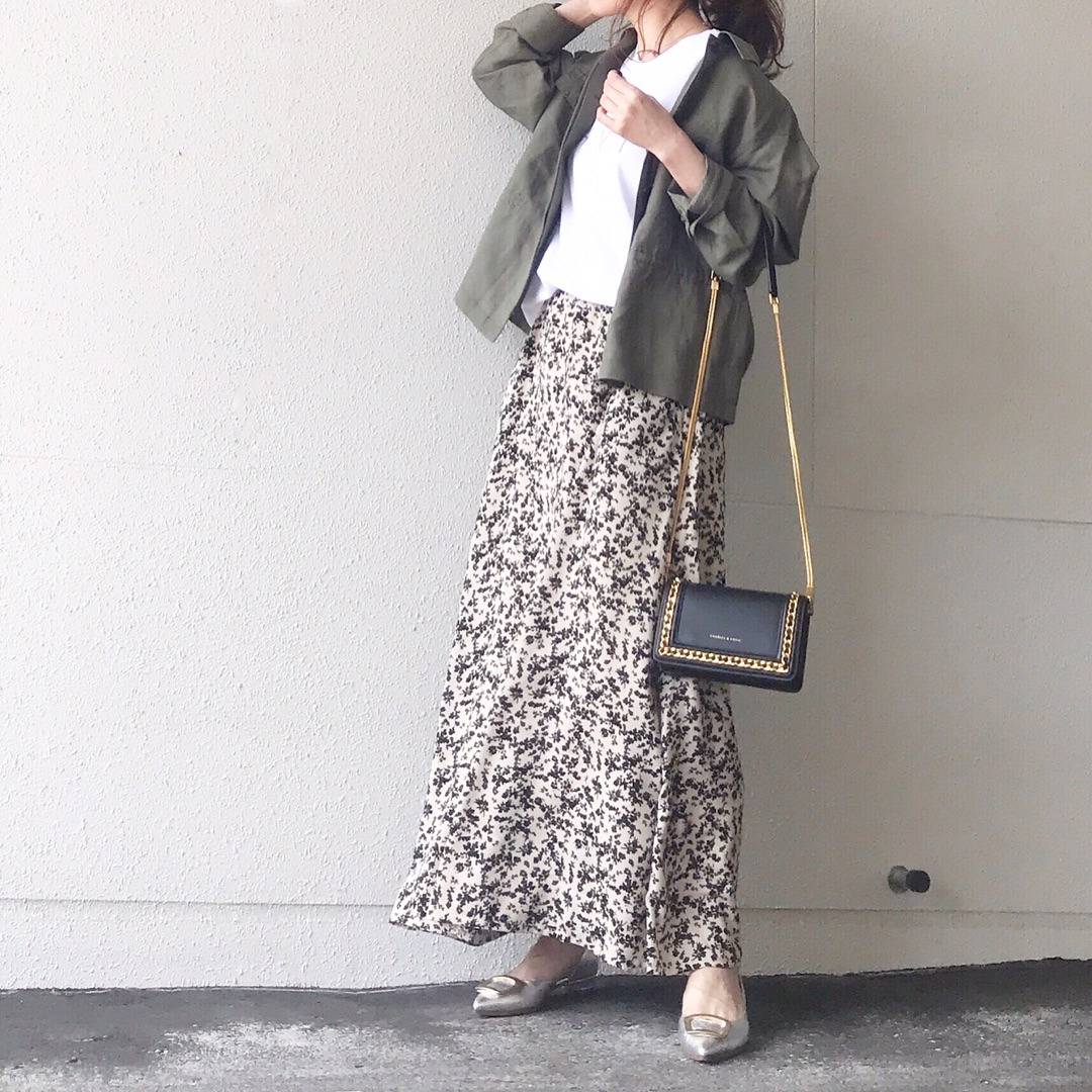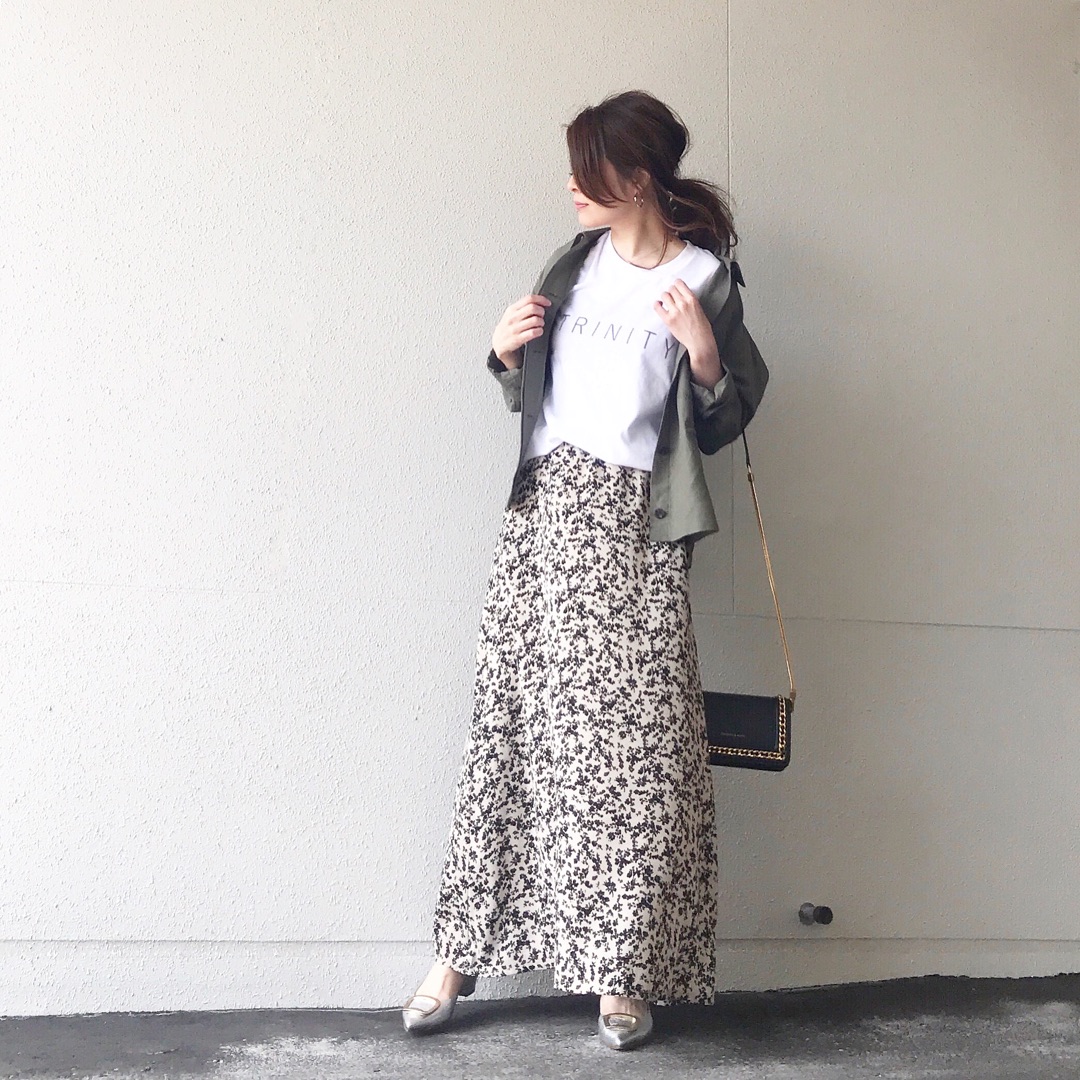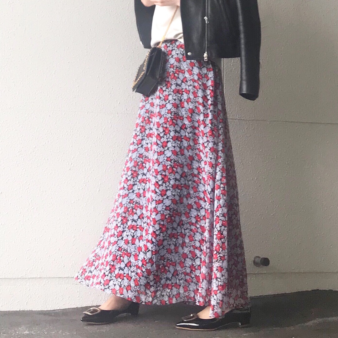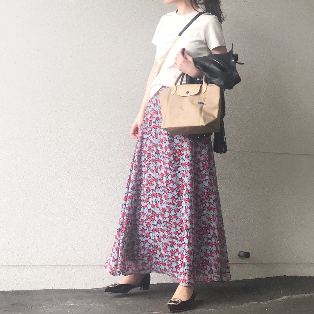 この花柄スカートが可愛くて着回し中![]()