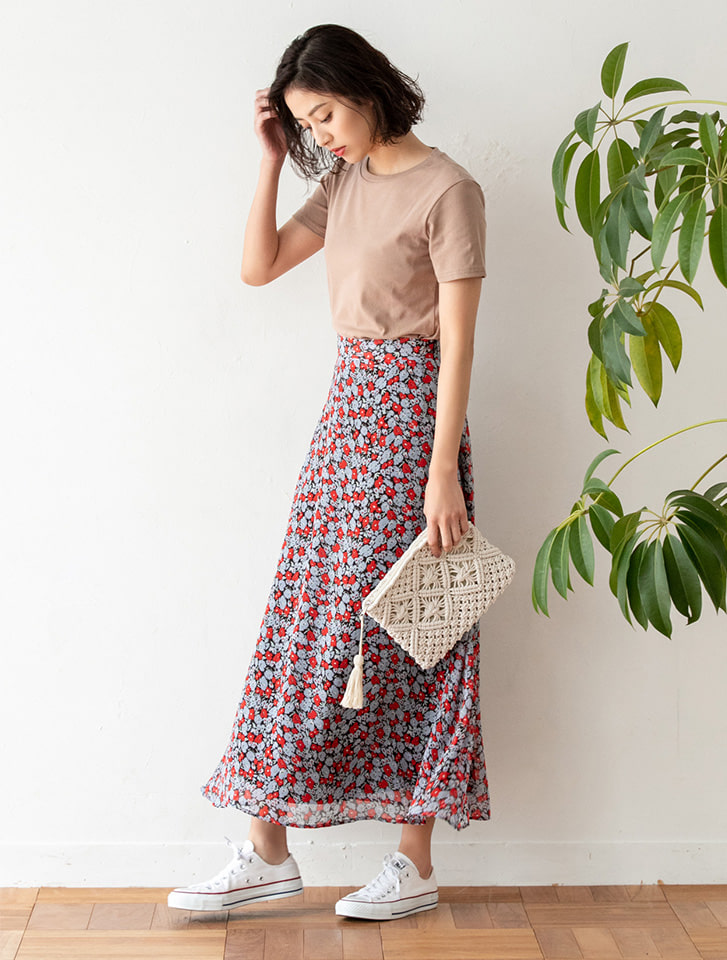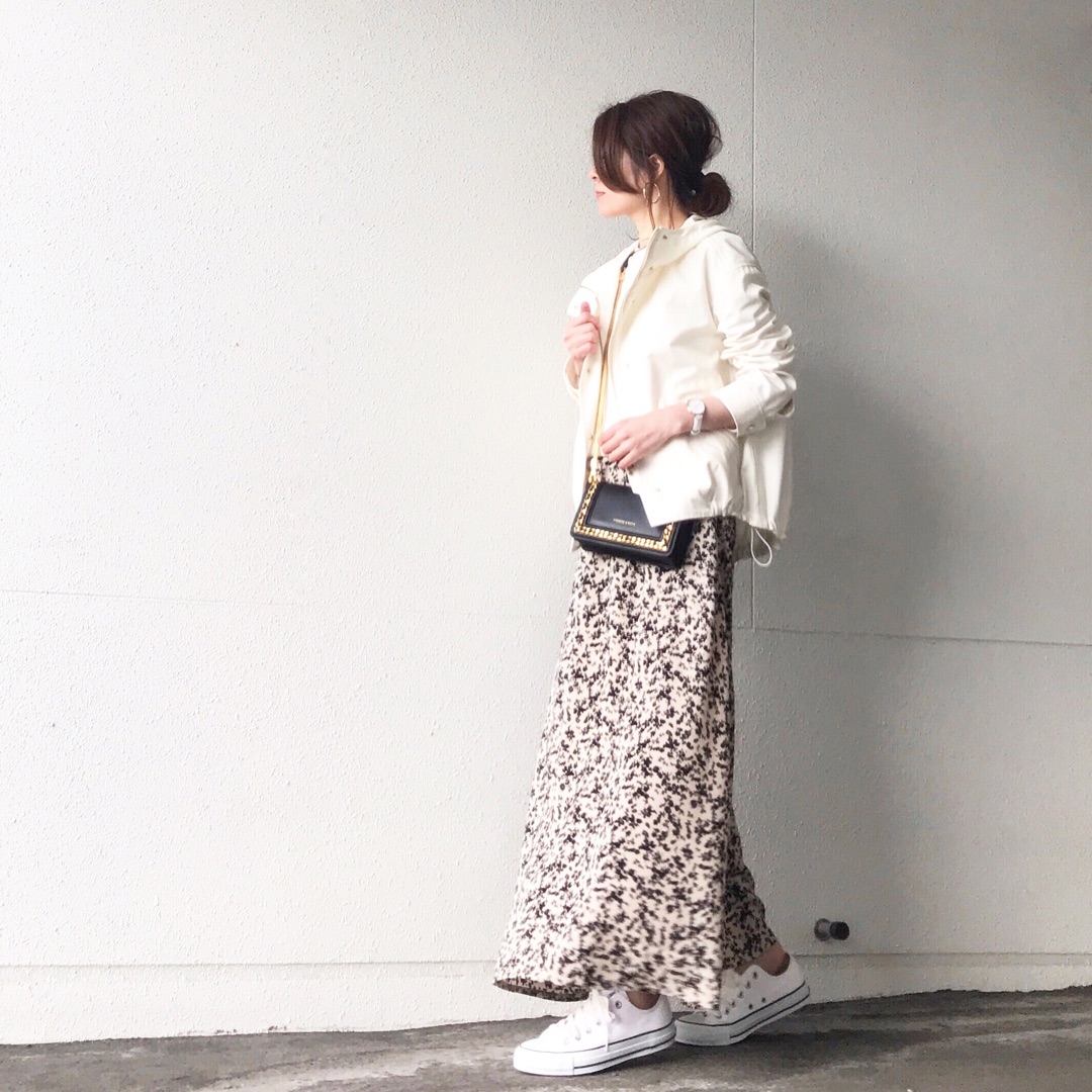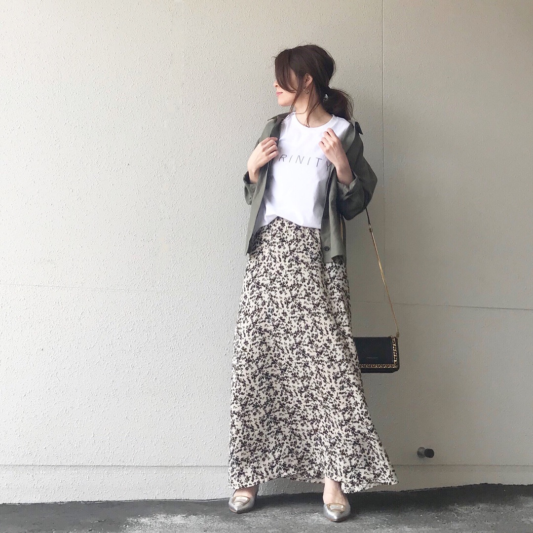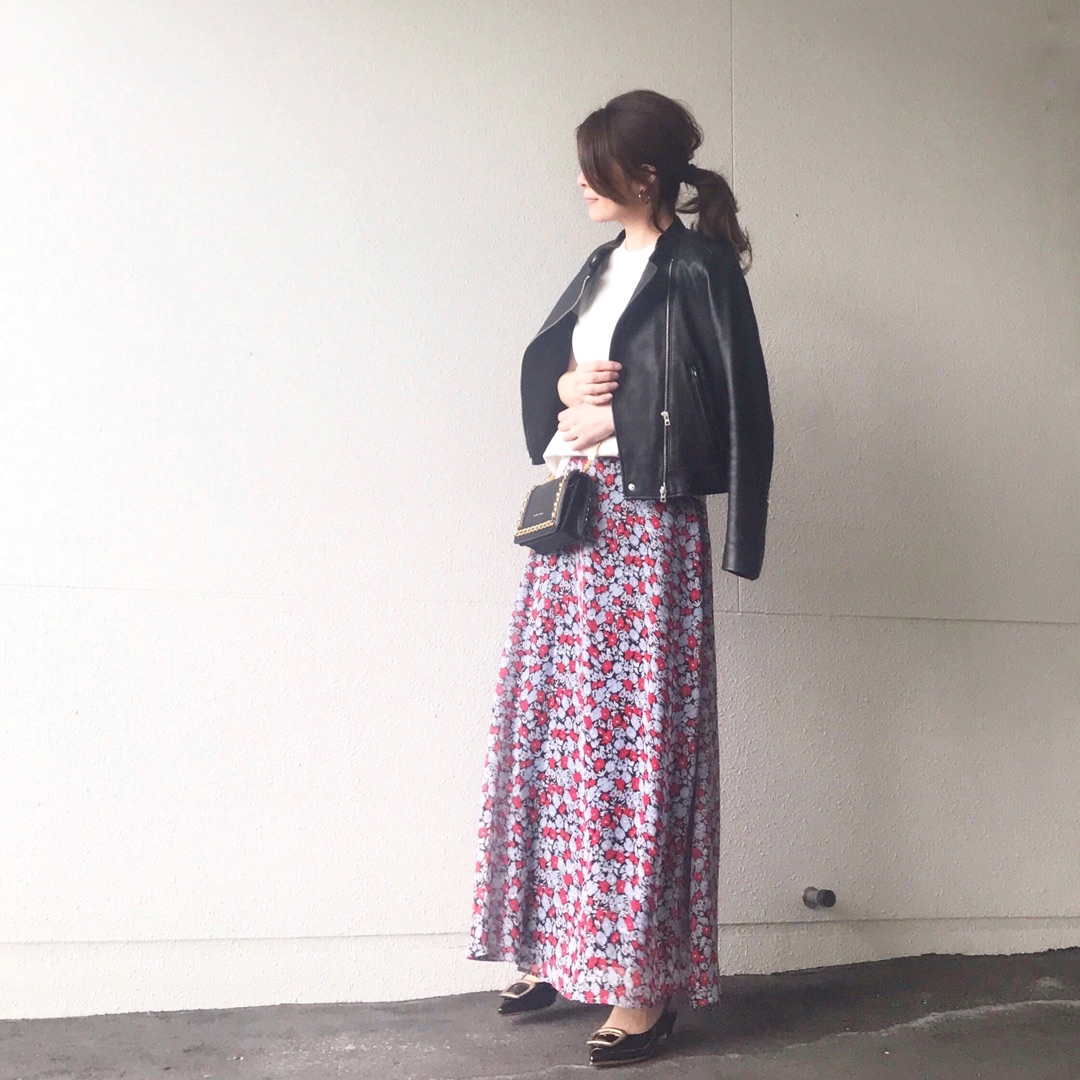 この花柄スカートが可愛くて着回し中![]()