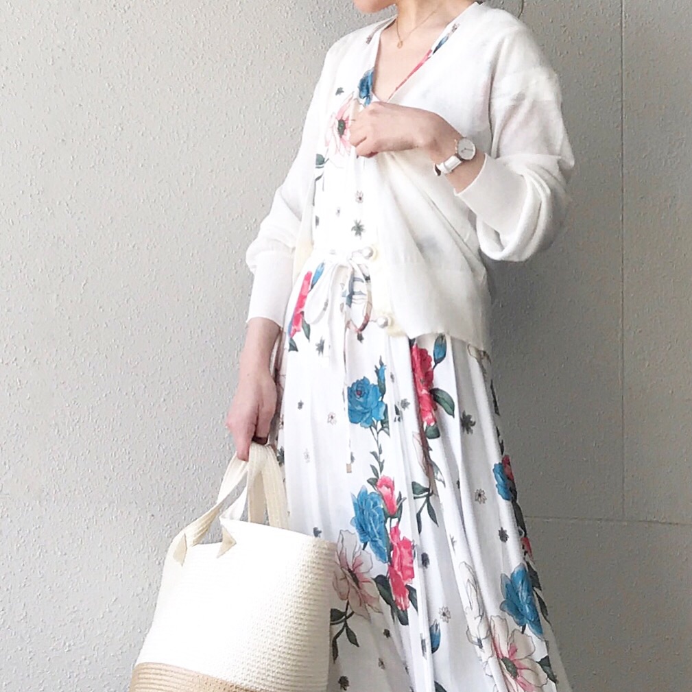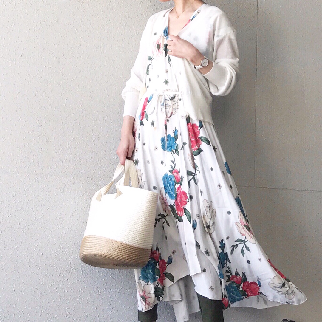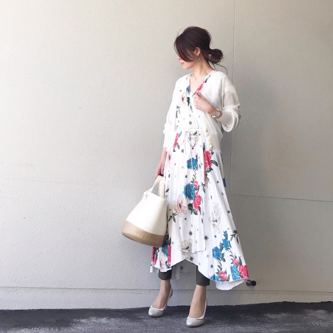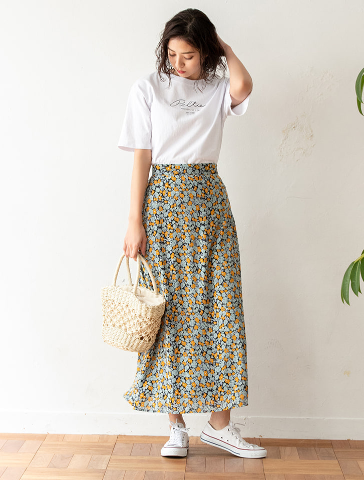 この花柄スカートが可愛くて着回し中![]()