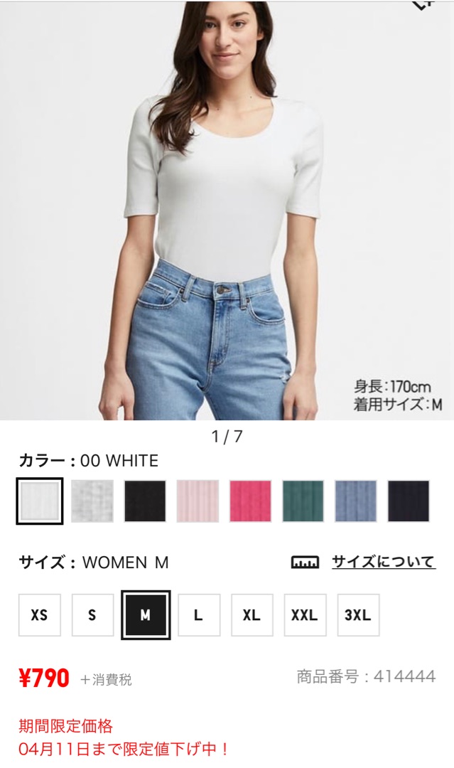 ![]() | リブUネックT(5分袖) 1,000円+消費税 ※価格は時期によって変更する可能性がございます。 UNIQLO |