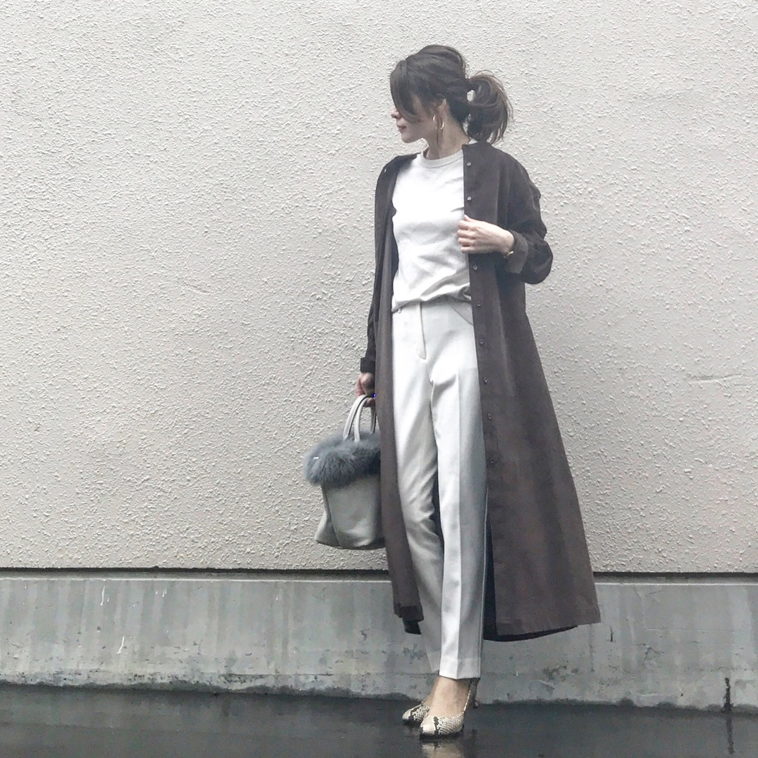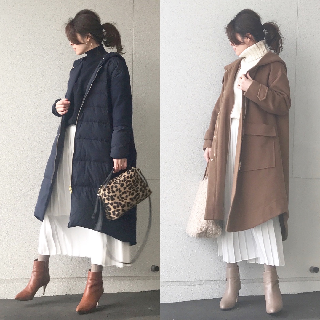 このスカートに合わせるアウターは長めが